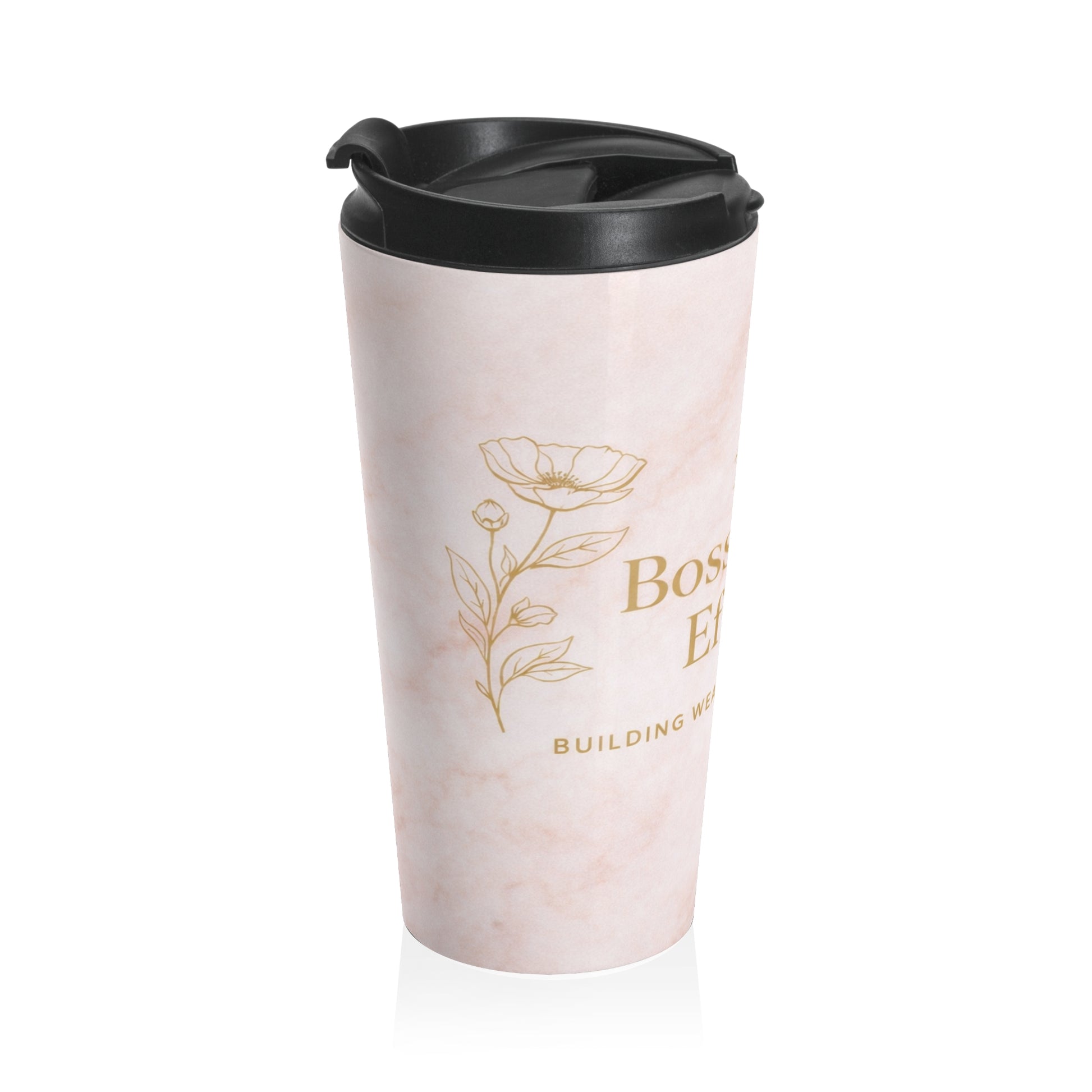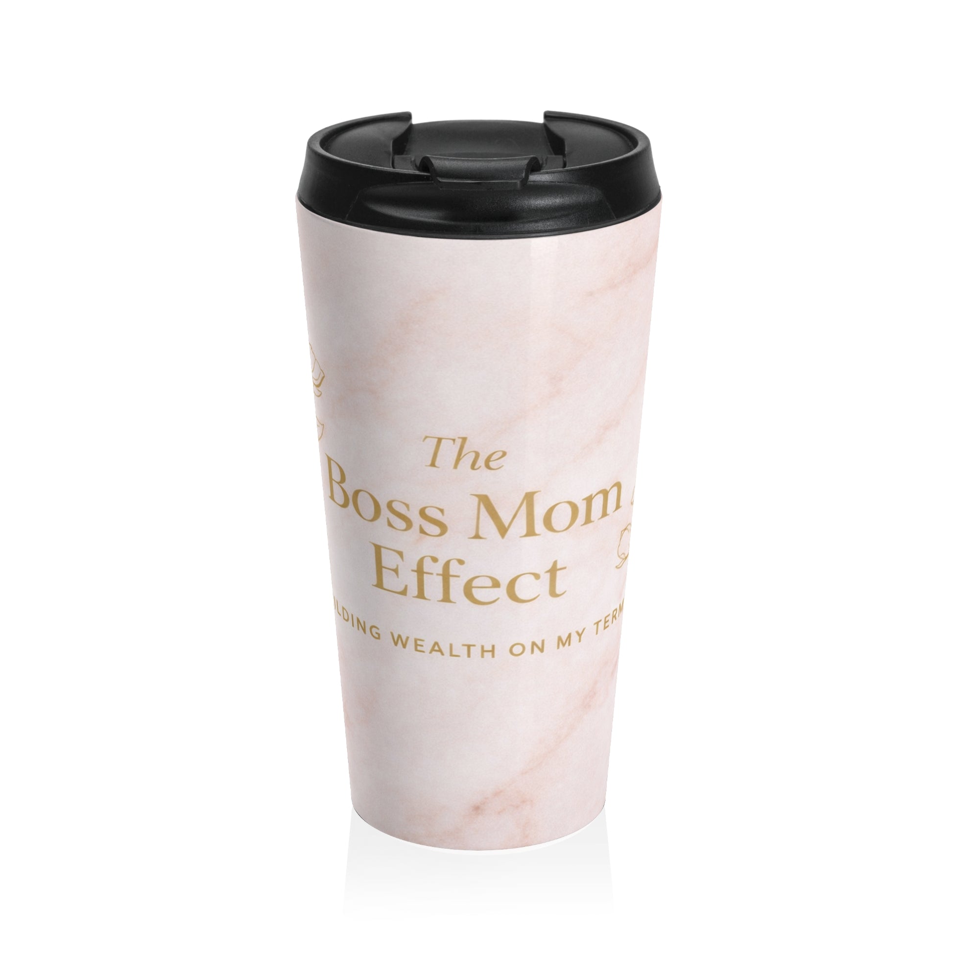 Boss Mom Effect Stainless Steel Travel Mug — Pink Marble Motivational Tumbler